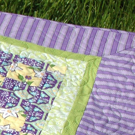 My friend, Pat Hopkins, mitered the corners on her version of Town Square. Didn’t she line up the stripes nicely? (I am not that patient so I’m glad you sewed this one, Pat.) Please excuse the out of focus photo but I was focusing elsewhere on the quilt and don’t have it back yet to stage a re-shoot.