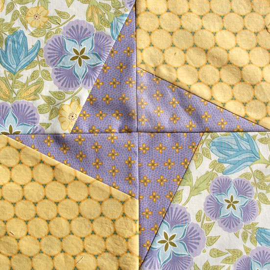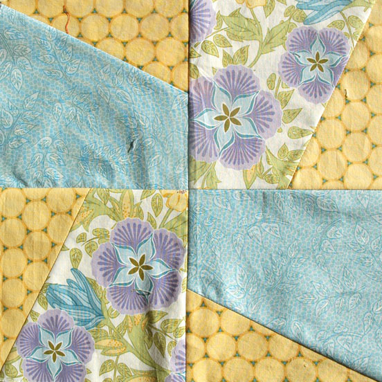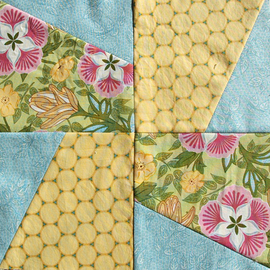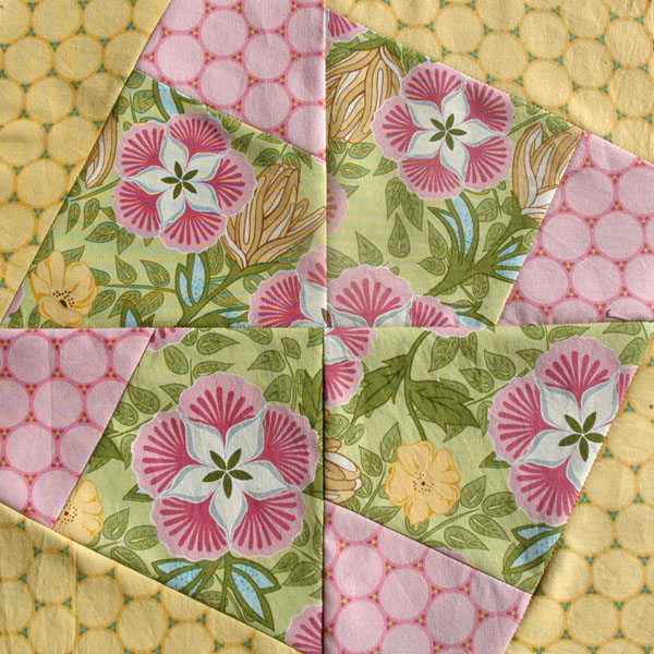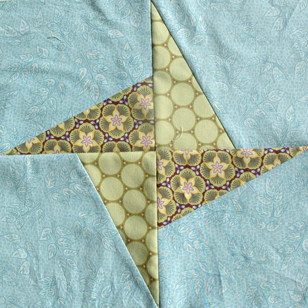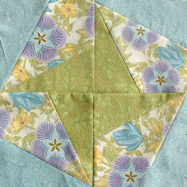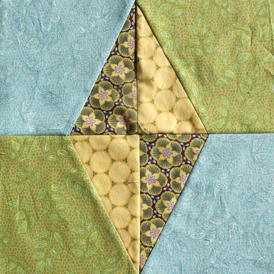 And because I’m a quilter, the object of my affection is a piece of clear plastic. I’m in the midst of designing a collection right now so sewing time is at a premium. While at my local shop, I picked up a “Lazy Angle Ruler”. It makes complex-looking blocks so quick and easy. I took some Ambrosia scraps and made sets of 4 (6-1/2″) squares, and then sewed them together to make 12-1/2″ blocks. They are addictive. I chose to make the finished blocks 12-1/2″ square, because then I can break it down into a 9-square and 16 square layout as well. But look at the possibilities with just a simple 2-piece 4 square block…