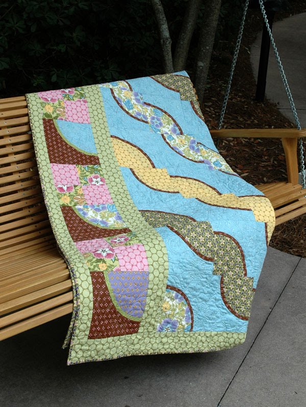 Happy Teddy was the felicitous product of a good sewing day – one where ridiculously long seams line up without using any pins. Don’t you LOVE those days? He is from a pattern called “… and the Three Bears” by Possibilities/Dream Spinners. I can’t find in on the net, but I bought it at Cross-Stitch Junction on Hilton Head Island, South Carolina, if you are interested. They had these bears made up in many different fabric lines and they made a great display. Next, I want to make a teddy out of those patchwork squares that are being stampeded by Angry Dog.