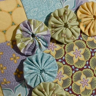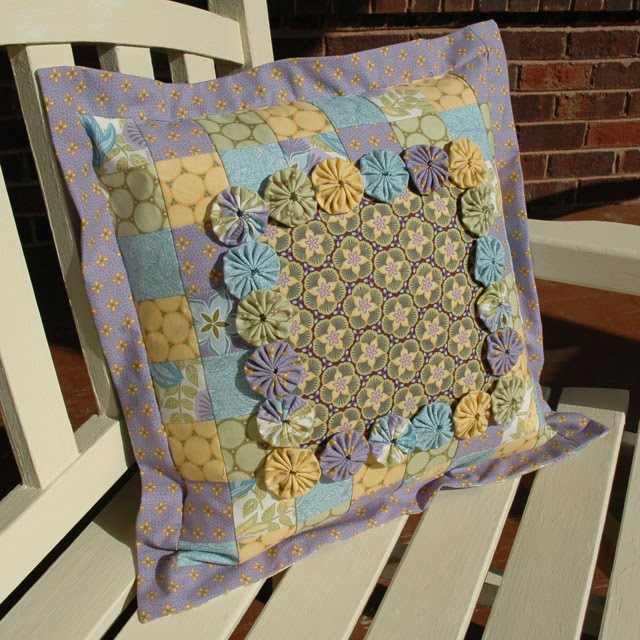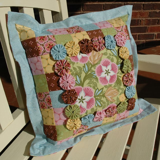 I just finished sewing two version of my Yo-Yo Pillow in Ambrosia. Here is the Summer version: