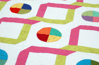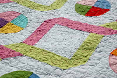 | Look how she used both ribbon colors in the quilting so the green pops on the pink and vice versa! |