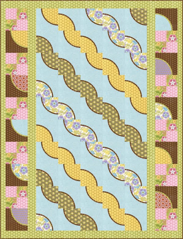 Happy Teddy was the felicitous product of a good sewing day – one where ridiculously long seams line up without using any pins. Don’t you LOVE those days? He is from a pattern called “… and the Three Bears” by Possibilities/Dream Spinners. I can’t find in on the net, but I bought it at Cross-Stitch Junction on Hilton Head Island, South Carolina, if you are interested. They had these bears made up in many different fabric lines and they made a great display. Next, I want to make a teddy out of those patchwork squares that are being stampeded by Angry Dog.
