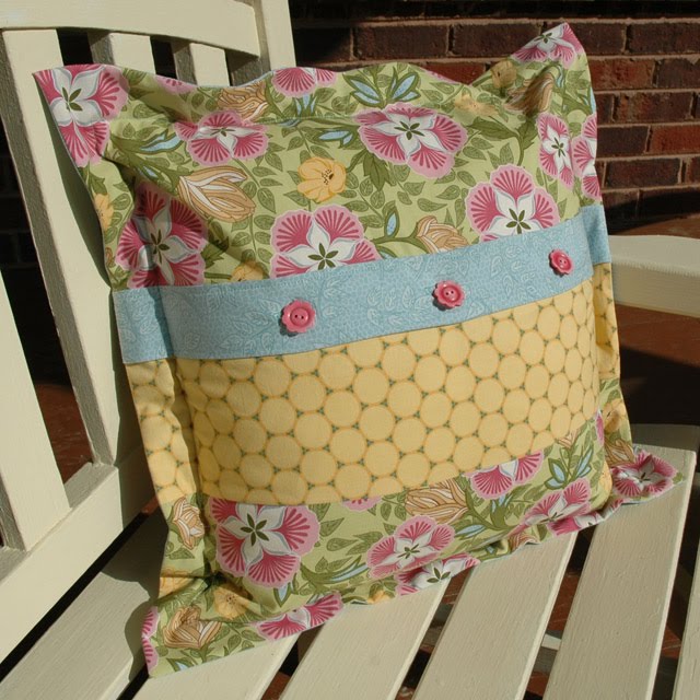 I just finished sewing two version of my Yo-Yo Pillow in Ambrosia. Here is the Summer version: