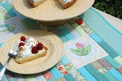 Brewer markets a Bosal fusible base for both placemats and a table runner so they asked me to design a pattern for those products. Of course, you can also use regular batting so this is just one option. Again, I wanted to make things scrappy but feature optional areas for feature prints or embroidery. Here is A Modern Table.