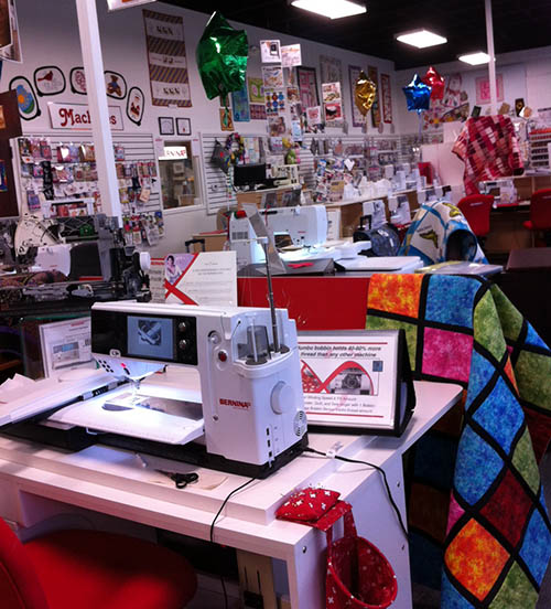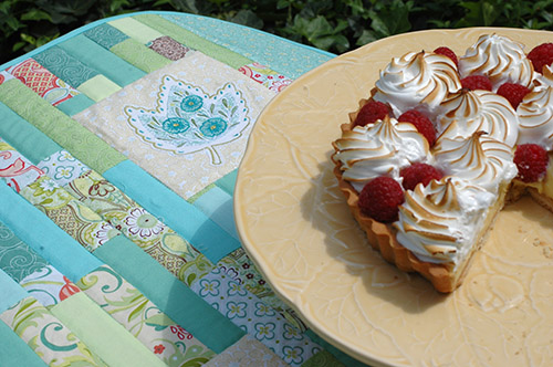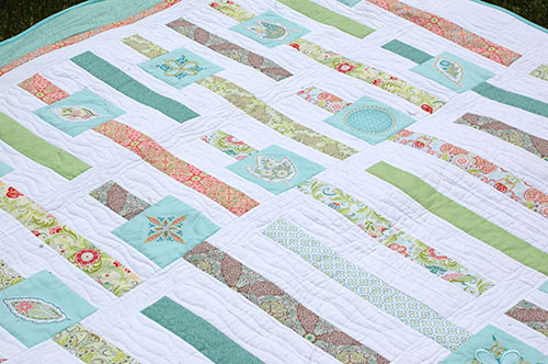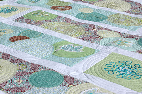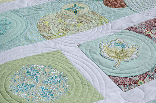 Soda Pop has free form circles that are either cut out of feature prints or feature embroidery. And it is so much fun to applique them in contrasting thread!