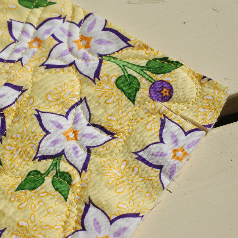 I will zigzag in yellow to match the border and it will be okay. This is what I am telling myself. This is actually the first quilt to be finished from the pattern line I’m debuting at Market, so I think it is fitting that it be marked insome special way – and I have certainly found a method to put my unique stamp on it. (If you are at Market, please stop by booth 2224 to meet the unfortunate victim of my rotary cutter – and to meet the antagonist in this saga.)
