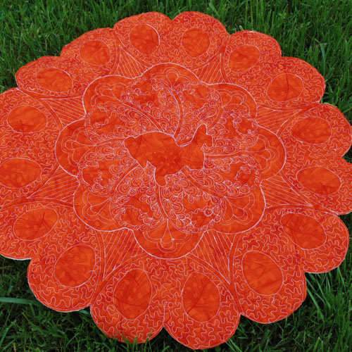 I also marked off arc areas around the eggs and filled them with stippling. With all that motion I quilted some straight lines between these areas for contrast.