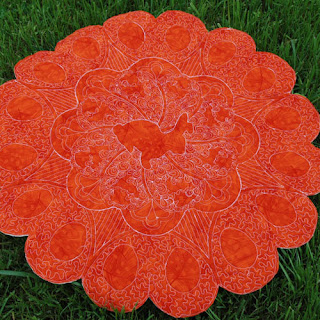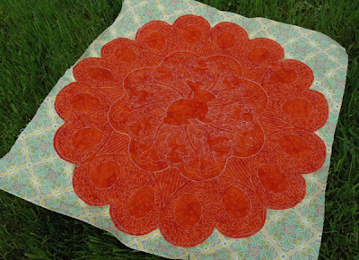 I also marked off arc areas around the eggs and filled them with stippling. With all that motion I quilted some straight lines between these areas for contrast.