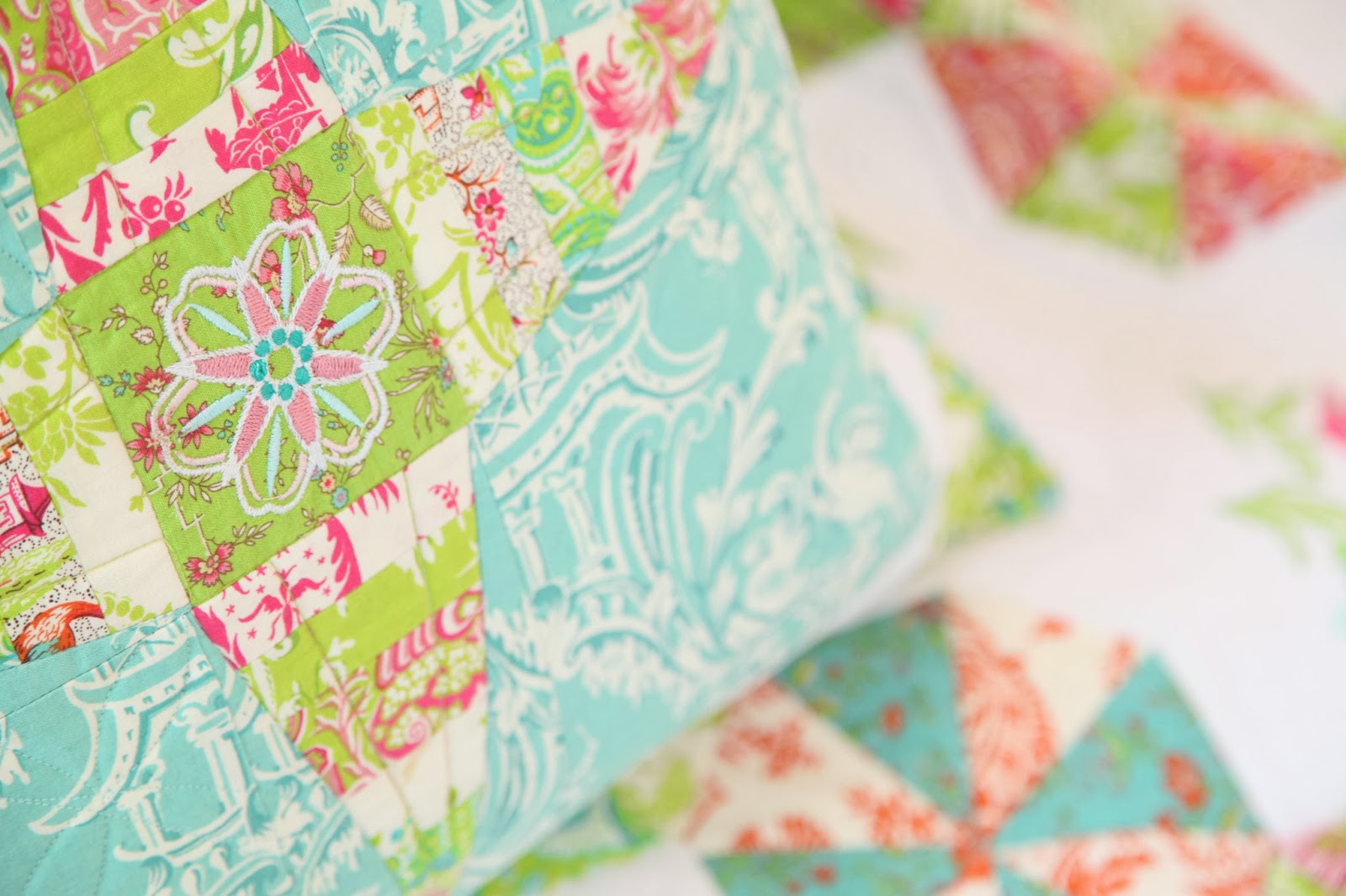 Elegant Embroidered Quilts (link coming Wednesday) was designed for intermediate sewers who want to learn to incorporate machine embroidery into their quilting and create projects that are completely unique to them. The patterns for 3 quilts, 3 smaller projects, and 5 original embroidery motifs are all included in the class.