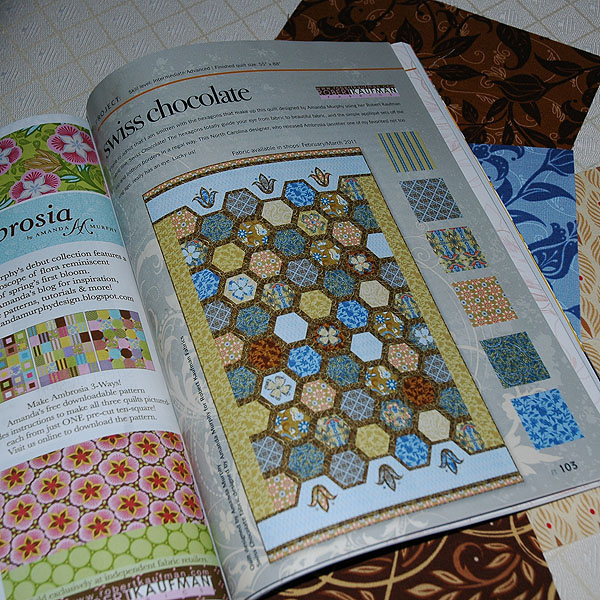 The people at Fabric Trends did such a nice job with the instructions. They even showcased both color stories! You can preorder a kit here, but the kits won’t ship until late February/early March. If you can’t wait, Fat Quarter Shop, who will be kitting many of the Swiss Chocolate magazine quilts, just got in the entire line!