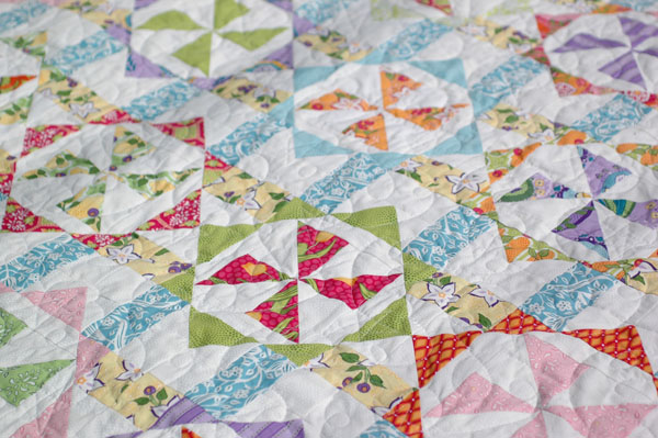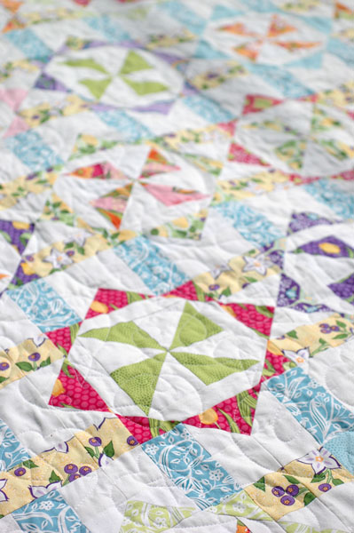 For Issue 6, which comes out early next week, I designed a quilt called “Virginia Reel” in my Veranda line. I called it that because it is comprised of dozens of pinwheels that seem to spin between pairs of columns, just like dancers in a reel.