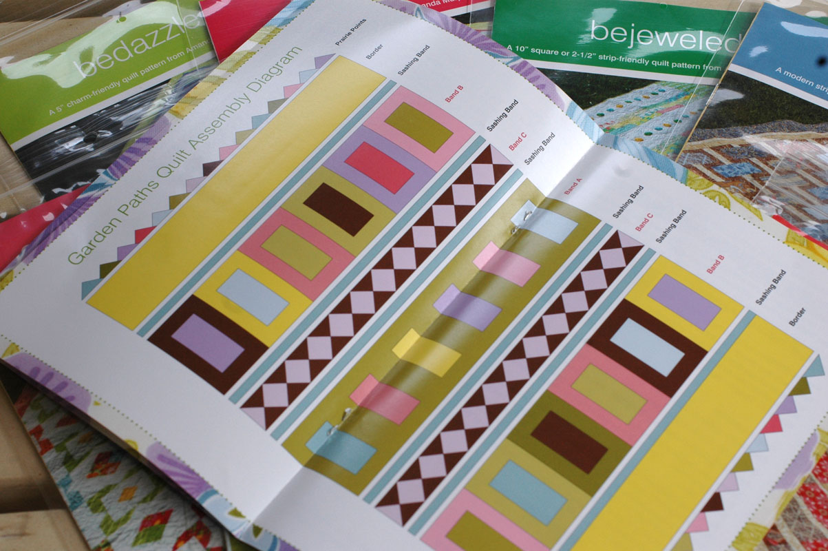 My final new pattern is Garden Sampler. This twin bed-sized design was originally published in American Patchwork and Quilting almost a year ago. I decided to reissue it becuase the really big blocks make it just perfect for some of those modern lines out there. Those big rectangles are 12” x 18”!