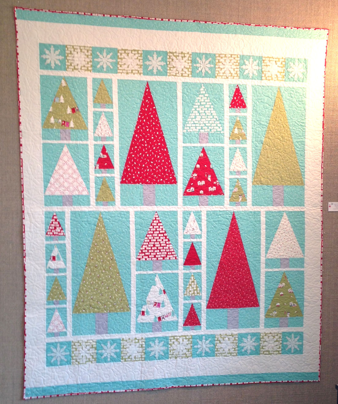 This morning my friend Cherry, of Cherry Blossoms Quilting Studio, sent me a photo that made my day! She made Holiday Forest, from Modern Holiday with a touch of red and it is hanging in her local library. I love it!