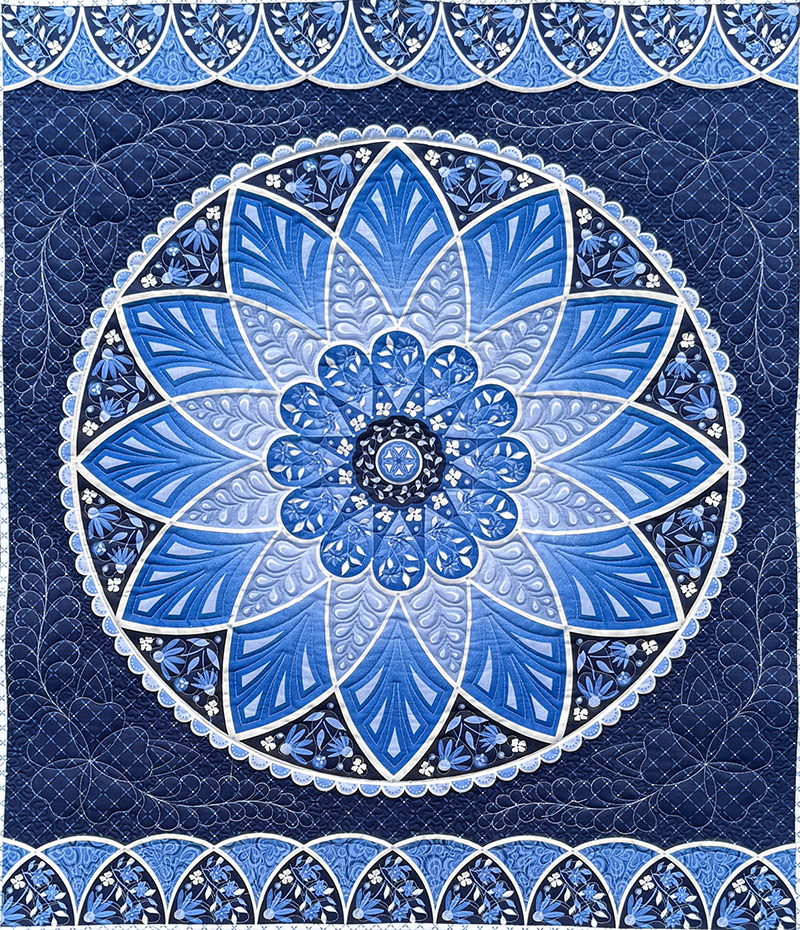 Exclusive project kit featuring 1 Moonlight Blossom Panel by Amanda Murphy for Benartex, 3 spools of coordinating Perfect Quilting Thread & custom wholecloth quilting design (BQM & EXP formats on a USB).