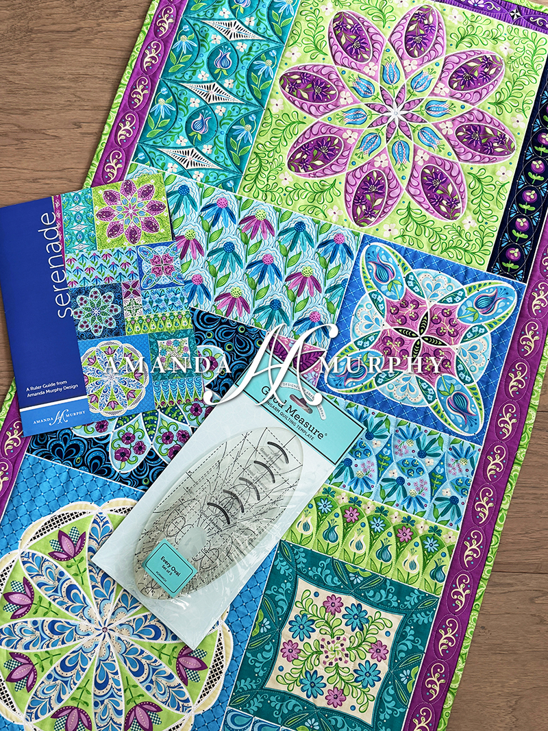 This special bundle includes a Rulerwork Panel from Amanda’s Twilight Serenade collection, a set of longarm thickness (approximately 6mm) Every Oval Quilting Templates, and a Serenade Ruler Guide. It has a retail value of $102.99 but as a bundle it is priced at $89.99! The panel is designed to teach you how to quilt a variety of designs with oval templates and the guide takes you through the process step-by-step.
