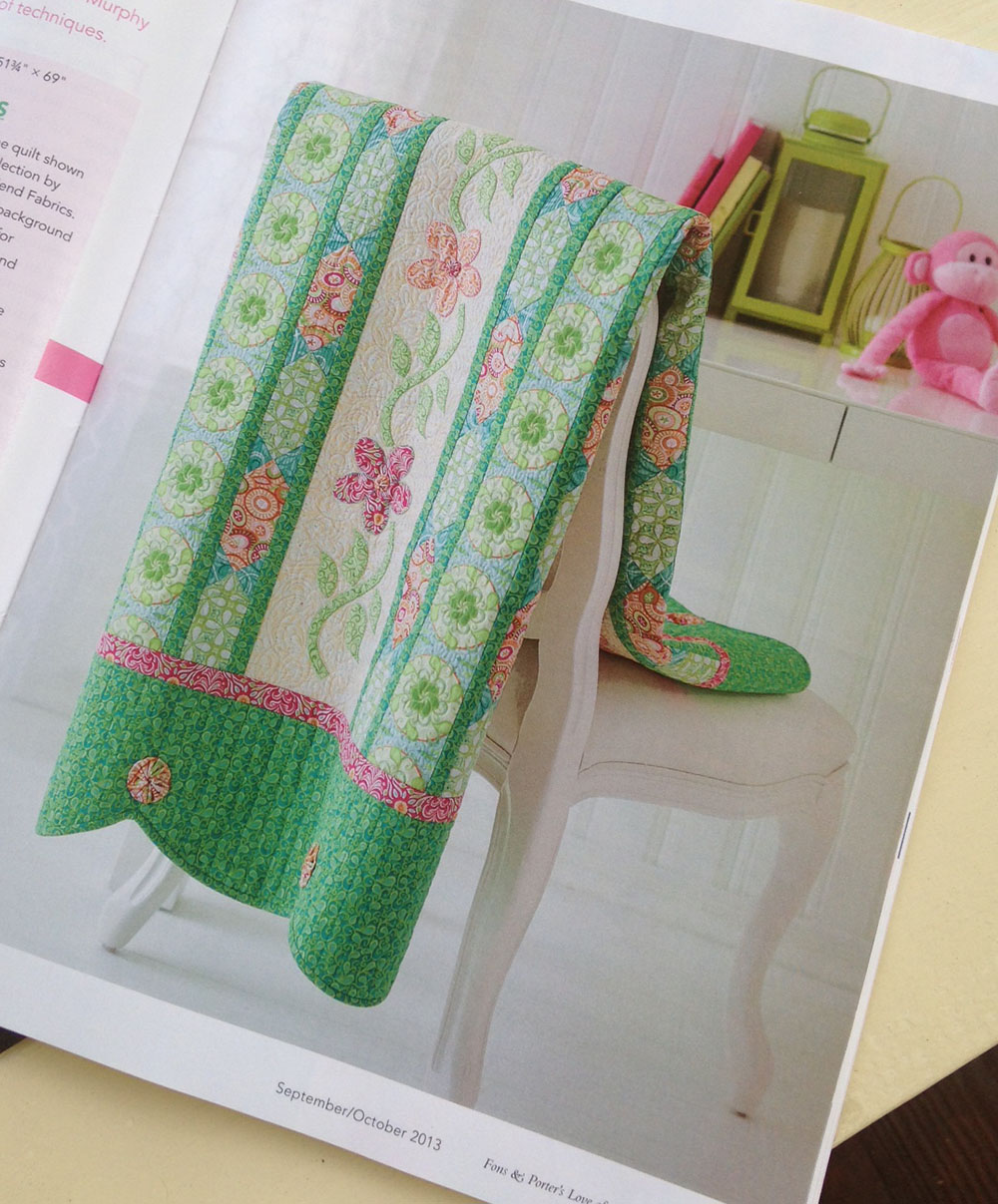 The people at Fons and Porter were so great and made me feel right at home.  I designed a quilt called “Bella’s Garden”, using my Bella line for Blend Fabrics, especially for this issue.  Hope you like it!