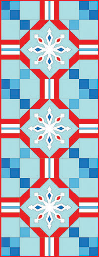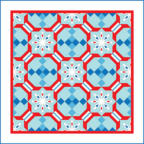 I enjoyed making this. The applique and piecing are really simple but, because of the color choices, they look bold. I used some fabrics from Laurie Wisbrun’s Brrr collection and also some neutrals by Patrick Lose, both of which are manufactured by Robert Kaufman.