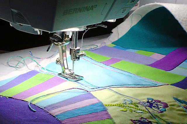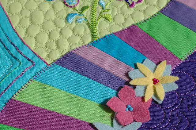 Bernina’s Stitch ‘N Bloom collection for the embroidery. This is a great way to try out new collections! Keep a stack of designs ready and you will be ready for your next improvisational project…