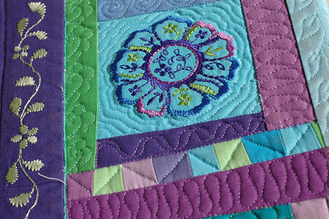 When I was piecing the center I also added some couching using Bernina foot #21 and decorative thread.