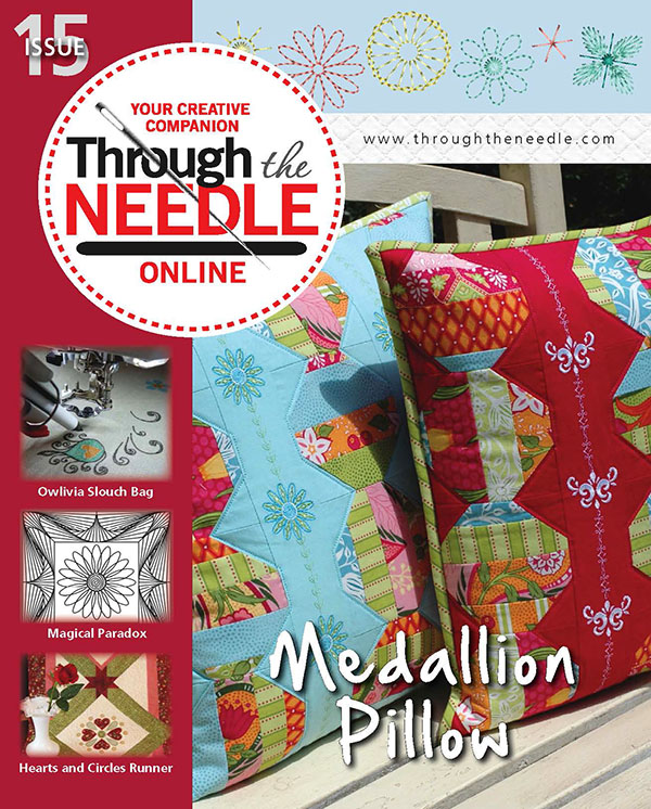 My medallion pillows made it onto the cover of Bernina’s Through the Needle online magazine.  You can download for free it here!